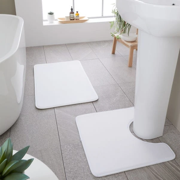 Designed for a cosy, cushioned feel underfoot, this set features a layer of memory foam that gently contours to your feet for extra support. Treated with an anti-bacterial finish, it helps reduce the growth of mould and bacteria for up to 20 washes, keeping your bathroom fresher for longer.