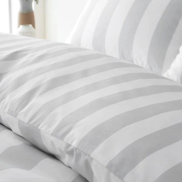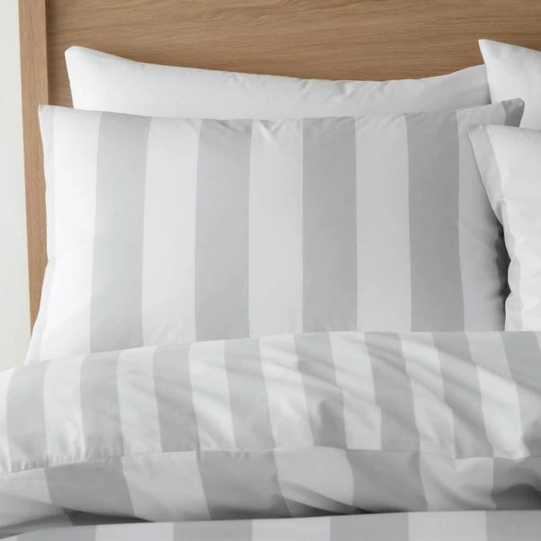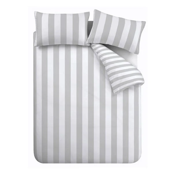 A contemporary twist on classic stripe, wide vertical bands in captivating contrasting tones to transform your bedroom into a serene oasis. Fully reversible with a simple smaller ribbon allows you to effortlessly switch up your style in seconds. Created from easy-care recycled polyester and soft responsibly sourced cotton, blended together for everyday use.