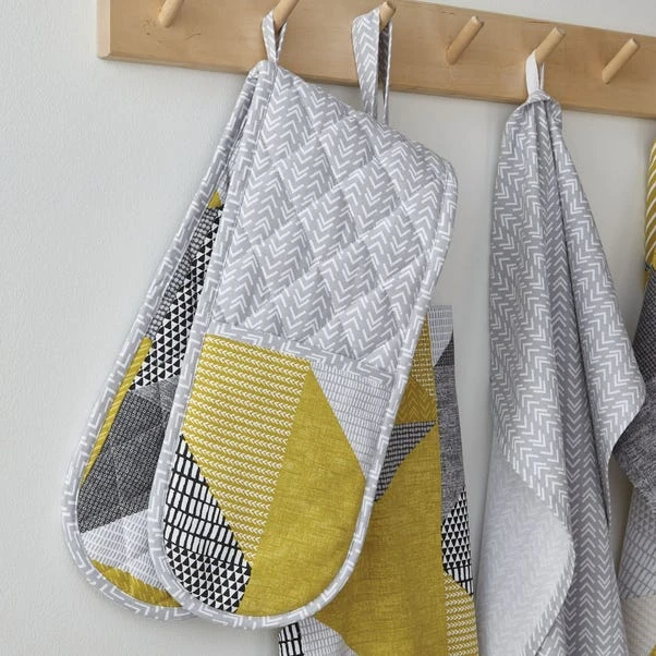 Add a bold, contemporary touch to your kitchen with the Larsson Geo double oven glove, inspired by the popular mark-making art trend. Designed and developed in Great Britain, this double oven glove combines style and functionality, offering heat protection up to 250 degrees in a domestic kitchen environment. Made from soft cotton, it provides comfort while withstanding regular use and washing and is available in a choice of colours. With its stylish design, it makes a practical yet stylish addition to your kitchen.